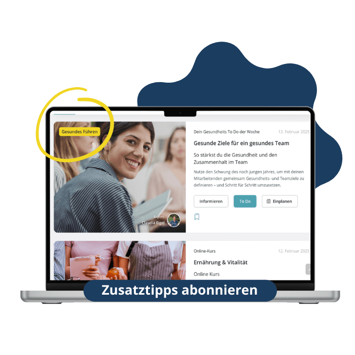 Bieten Sie Ihren Mitarbeitenden regelmäßige Gesundheitsimpulse, verbessern Sie die mentale Fitness und starten Sie jederzeit Challenges.